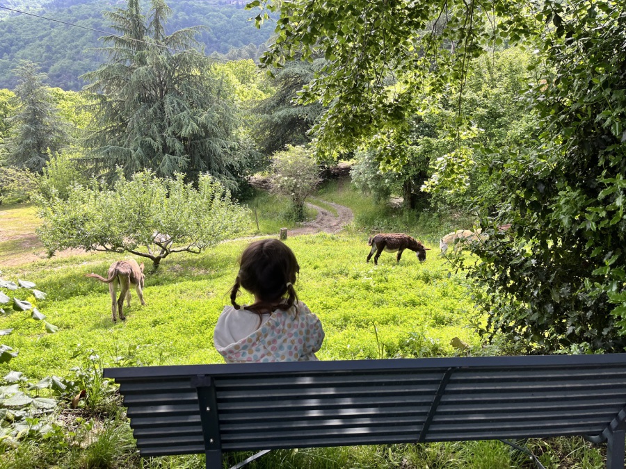 Nos ânes de la Frégère Basse peuvent accompagner petits et grands pour des randonnées inoubliables sur nos chemins cévenols.